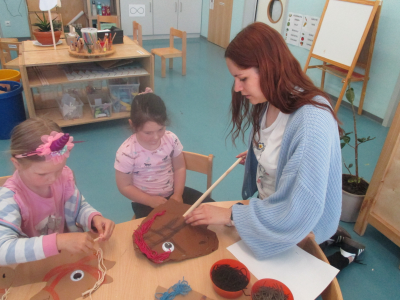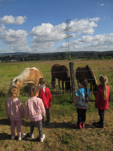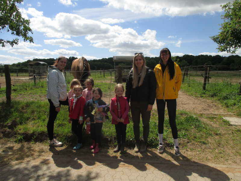 Das große PferdeabenteuerLiebe Eltern, im Rahmen meiner praxisintegrierten Ausbildung zur Erzieherin habe ich vom 06. bis zum 28. Mai 2025 ein Projekt in Campus III gestaltet. Dafür habe ich durch mehrere Beobachtungen eine Gruppe aus sechs Kindern ausgewählt, die sich in den letzten Wochen stark mit dem Thema Pferde und Reiterhof beschäftigt haben. In einer anschließenden Kinderkonferenz haben sich die Kinder auf den Namen „Das große Pferdeabenteuer - alles über das Pferd und den Reiterhof“ geeinigt und eigene Ideen und Wünsche für die Gestaltung des Projektes eingebracht. Dabei konnte ich beobachten, dass die Kinder bereits klare Vorstellungen, kreative Ideen und Wissbegierde für das Projekt hatten. Basierend auf den Ideen und Wünschen der Kinder haben wir verschiedene Bildungsangebote durchgeführt, welche unter anderem die sprachlichen, sozial-emotionalen und kognitiven Fähigkeiten und Kompetenzen der Kinder förderten und ihr Wissen zum Thema Pferde und Reiterhof erweiterten. Der Großteil der Ideen für diese Bildungsangebote kam dabei von den Kindern. Zu diesen Bildungsangeboten zählten zum Beispiel eine Hör- und Klanggeschichte über einen Ausflug zum Reiterhof, Pferde-Yoga zu den Körperteilen eines Pferdes, das Gestalten eigener Steckenpferde, ein Bewegungsparcours mit den Steckenpferden und das Gestalten eines Pferde- Und Reiterhof-Memorys. Es war mir wichtig, dass die Kinder jederzeit weitere Ideen und Wünsche äußern, damit wir das Projekt bestmöglich im Sinne der Interessen der Kinder gestalten konnten. Zudem hatten die Kinder sehr viel Entscheidungsfreiraum und konnten ihrer Kreativität stets einen freien Lauf lassen. Das Highlight unseres Projektes war mit Abstand der Ausflug auf den Lachwaldhof in Saarwellingen. Dort haben die Kinder unter anderem gelernt, was alles zu der Arbeit auf einem Reiterhof zählt und wie man sich in der Nähe von Pferden verhalten sollte. Außerdem hatten wir die Möglichkeit ein Pferd zu striegeln und zu füttern, sowie eine Kutschfahrt auf dem Gelände zu machen. Der Abschluss unseres Projektes fand sich in einem Elternnachmittag. Dafür haben wir gemeinsam Plakate gestaltet, welche die einzelnen Bildungsangebote vorgestellt haben. Diese Plakate haben wir in der Cafeteria aufgehangen und die dazugehörigen Materialen der Bildungsangebote bereitgestellt. Zudem haben wir verschiedene Snacks, wie Obst-Spieße oder Blätterteig-Schnecken, vorbereitet, die während dem Elternnachmittag gemeinsam gegessen wurden. Die Eltern hatten somit die Möglichkeit unser Projekt zu verfolgen und zu sehen, was die Kinder gestaltet und gelernt haben. Die Kinder haben abschließend noch gezeigt, wie man richtig auf einem Steckenpferd reitet, wie sie ein Hindernis überqueren und wie sie Slalom reiten. Es war schön zu beobachten, wie die Kinder von- und miteinander gelernt haben. Sie haben außerdem Rücksicht aufeinander genommen, sich bei Schwierigkeiten gegenseitig geholfen und ihre Ideen miteinander geteilt. Die Kinder haben während des Projektes sehr viel zum Thema Pferd und Reiterhof gelernt und sind unter anderem in ihrer Selbstständigkeit, ihrer Sprache, ihren Bewegungen und ihrem Umgang miteinander richtig groß geworden. Ich bedanke mich bei allen Beteiligten für das Mitwirken und die Unterstützung während unseres Projektes.